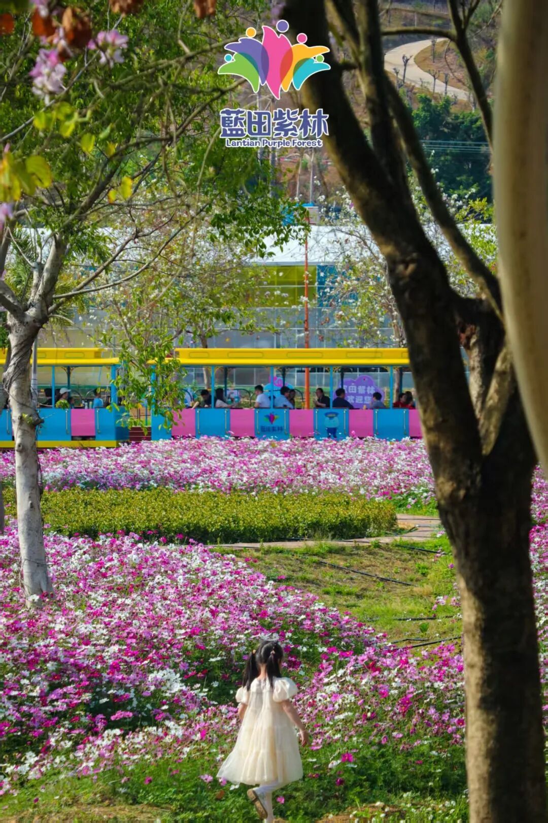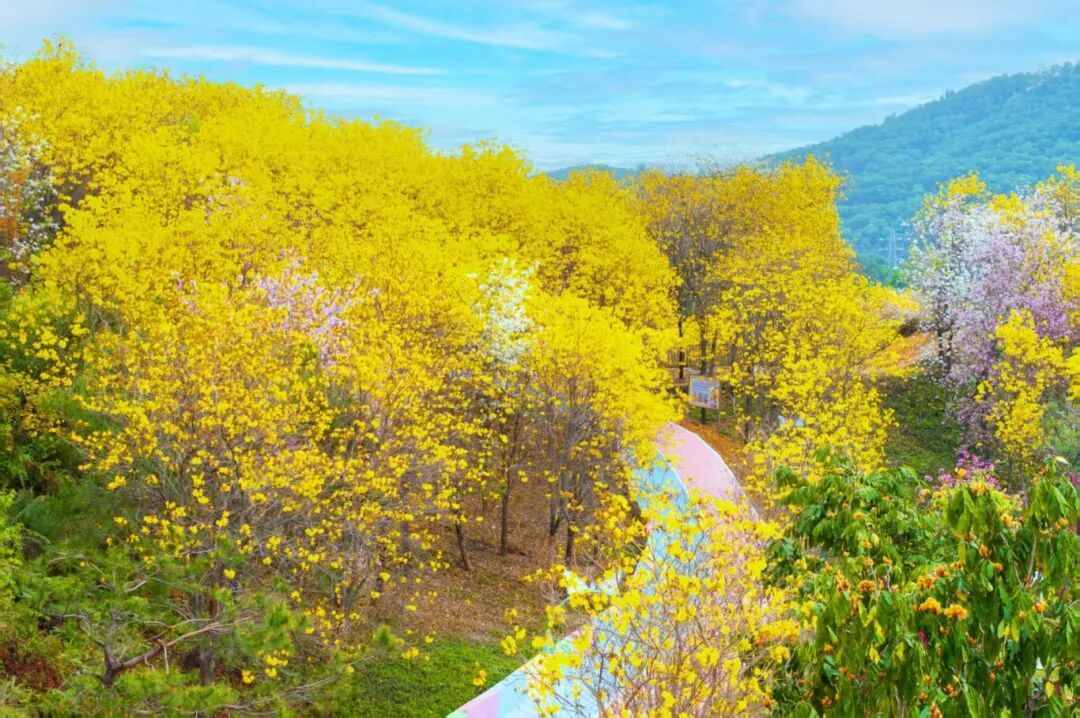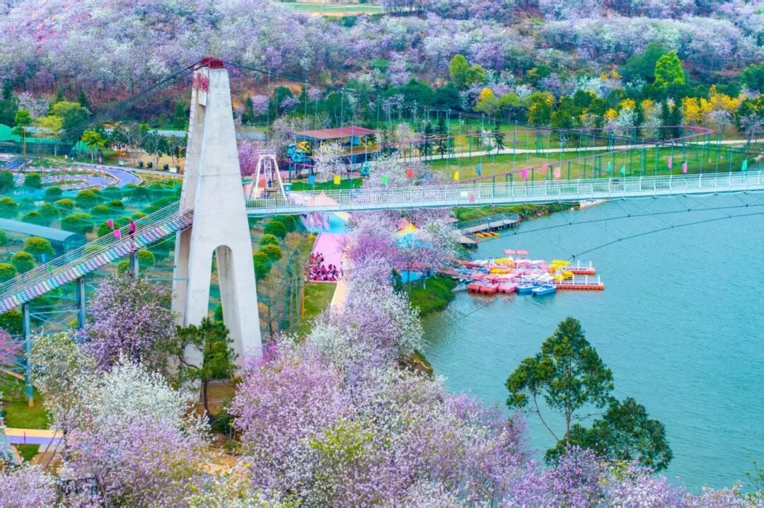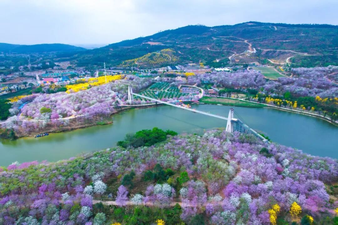 2.蓝田紫林专属风貌:记录蓝田紫林春日宫粉紫荆、黄花风铃木等花海景观、景区打卡点、花卉特色细节;