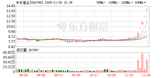 中水渔业盘中涨停,已连收5个涨停板,截至9:25,该股报13.72元,换手率0.10%,成交量36.64万股,成交金额502.70万元,涨停板封单金额为12.62亿元。连续涨停期间,该股累计上涨61.03%,累计换手率为30.80%。最新A股总市值达50.20亿元,A股流通市值50.19亿元。